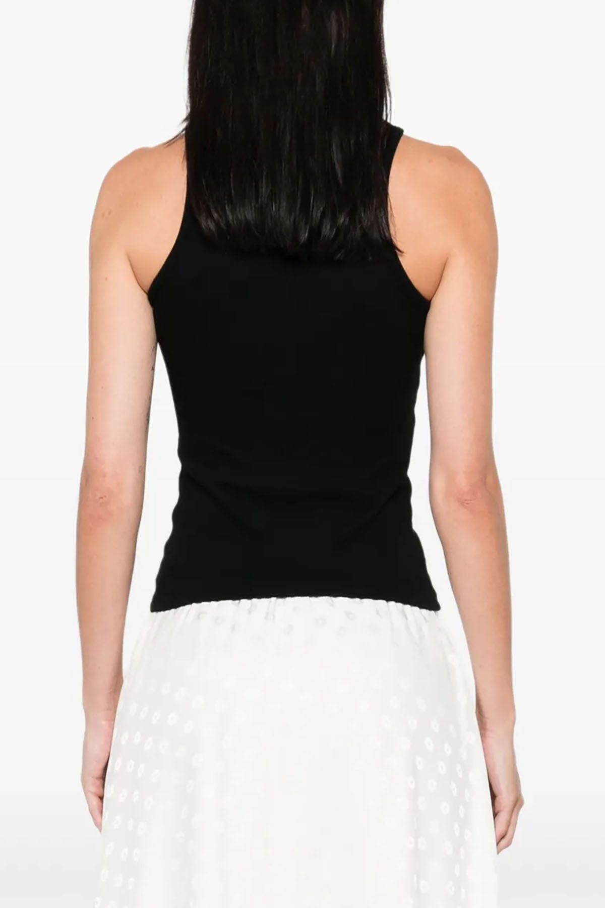 Modello con trama a coste, scollo rotondo, senza maniche, motivo Orb.